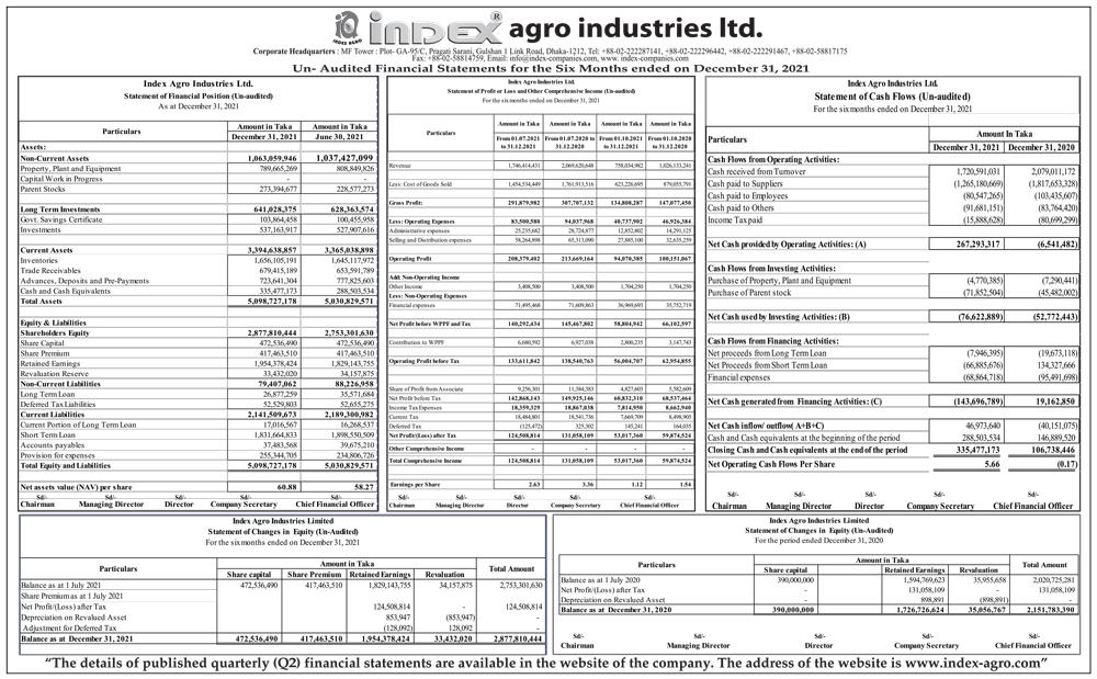 Un-audited Financial Statements of Index Agro Industries Ltd.