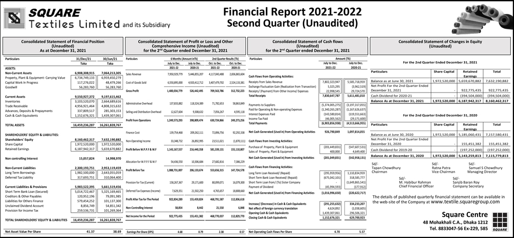 Q2 Financial Statements (un-audited) of Square Textile Limited