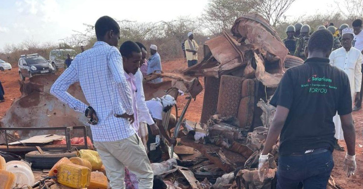 কেনিয়ার উত্তর-পূর্ব মানদেরা কাউন্টির পুলিশ এক বিবৃতিতে জানিয়েছে, সোমবার ১৪ আসন বিশিষ্ট একটি মিনিবাস মানদেরা শহরের দিকে যাওয়ার সময় রাস্তায় পেতে রাখা বোমাটিকে আঘাত করে। এরপরই বাসটিতে আগুন ধরে যায় এবং আরোহীরা দগ্ধ হয়ে মারা যান।