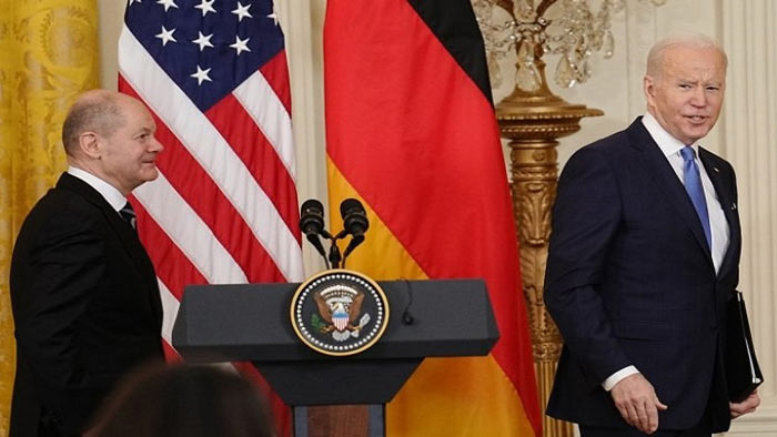 মার্কিন প্রেসিডেন্ট জো বাইডেন হুঁশিয়ারি দিয়ে বলেছেন, রাশিয়া ইউক্রেন দখল করলে নর্ডস্ট্রিম-২ গ্যাস পাইপলাইন প্রকল্প বন্ধ করে দেবে আমেরিকা। তিনি ওয়াশিংটন সফররত জার্মান চ্যান্সেলর ওলাফ শলৎসের সঙ্গে সাক্ষাতে এ হুঁশিয়ারি দিয়েছেন। মার্কিন প্রেসিডেন্ট জো বাইডেন বলেছেন, জার্মানি ও আমেরিকা কাঁধে কাঁধ মিলিয়ে রাশিয়ার আগ্রাসন প্রতিহত করার অপেক্ষায় রয়েছে।