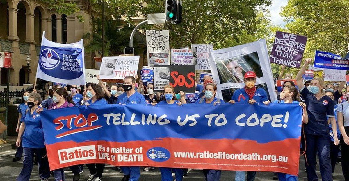 সোমবার বিকেলে সিডনির বিভিন্ন সড়কে মিছিল ও সমাবেশ করেন কয়েক হাজার নার্স ও স্বাস্থ্যকর্মী। এ সময় তারা হাসপাতাল ও স্বাস্থ্য পরিচর্যা কেন্দ্রগুলোতে রোগীর অনুপাতে নার্সের সংখ্যা বৃদ্ধির পাশাপাশি নার্সদের বেতন-ভাতা বৃদ্ধির দাবি জানান এবং ঘোষণা দেন— কেন্দ্রীয় কর্তৃপক্ষ এই দাবি মেনে না নেওয়া পর্যন্ত ধর্মঘটে থাকবেন তারা।