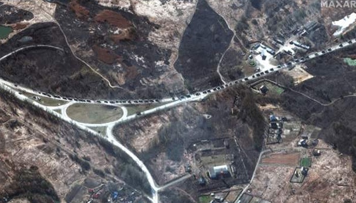 ইউক্রেনের রাজধানী কিয়েভ অভিমুখে ১৭ মাইল দীর্ঘ একটি সেনাবহর এগিয়ে যাচ্ছে বলে স্যাটেলাইট চিত্র প্রকাশ করে বাংলাদেশ সময় সোমবার রাতে বিবিসি জানিয়েছিল। তবে সকালে নতুন আরেকটি ছবি প্রকাশ করে সংবাদমাধ্যমটি জানিয়েছে বহরটি অন্তত ৪০ মাইল দীর্ঘ।
