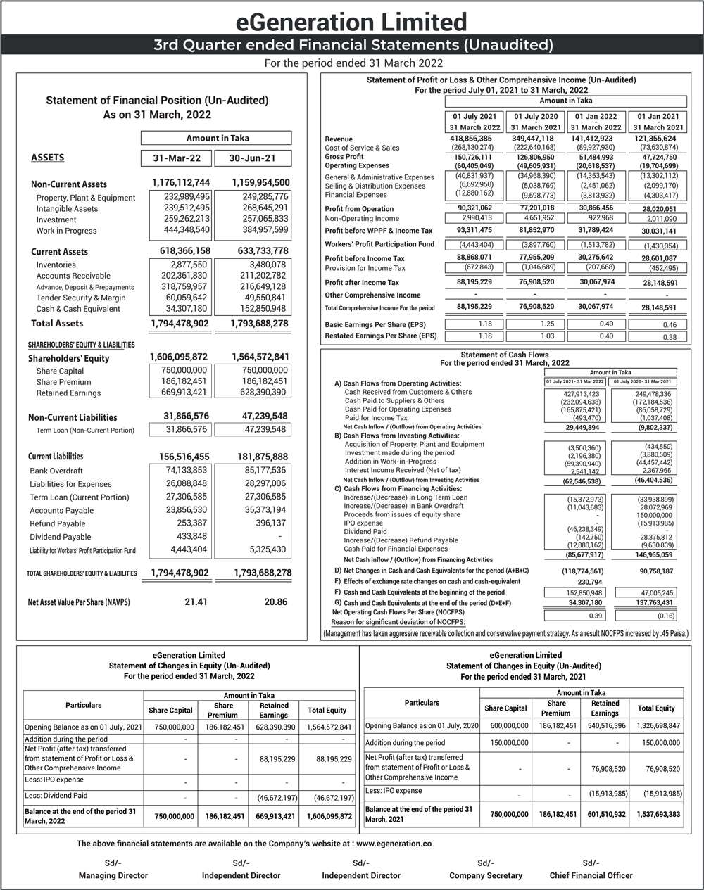 Q3 Financial Statements (Unaudited) of eGeneration Ltd.