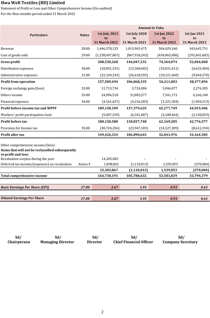 Price Sensitive Information of Hwa Well Textiles (BD) Limited
