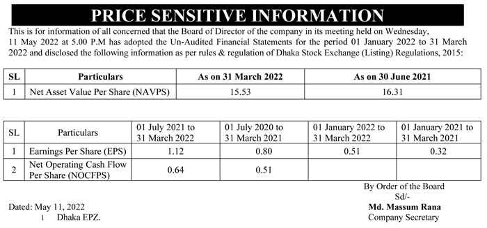 Price Sensitive Information of Queen South Textile Mills Ltd.