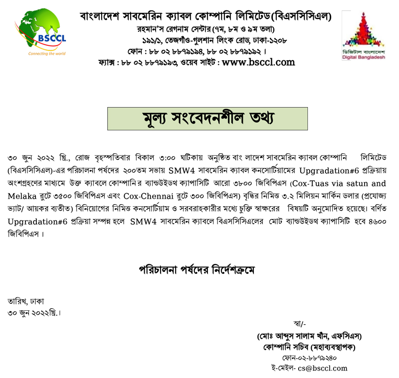Price Sensitive Information of Bangladesh Submarine Cable Company Limited