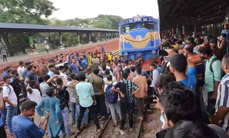 শিক্ষার্থীদের দাবি, বিমানবন্দর স্টেশনে টিকিট কাটতে আসনে দুই হাজার থেকে তিন হাজার শিক্ষার্থী। কিন্তু মাত্র ৩টি টিকিট বিক্রি করে বন্ধ করে দেওয়া হয় কাউন্টার। এরপরই ছাত্ররা নীলসাগর ট্রেনকে আটকে দেয়। বিমানবন্দর স্টেশনে সব ধরনের ট্রেন চলাচল বন্ধ করে দেন শিক্ষার্থীরা।