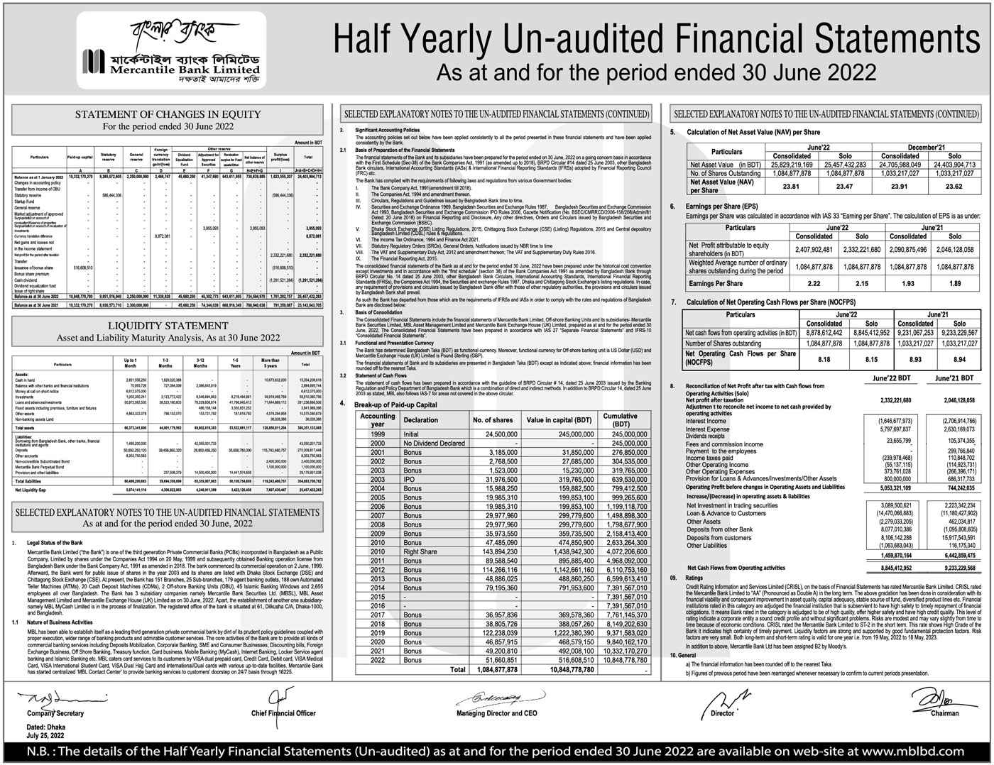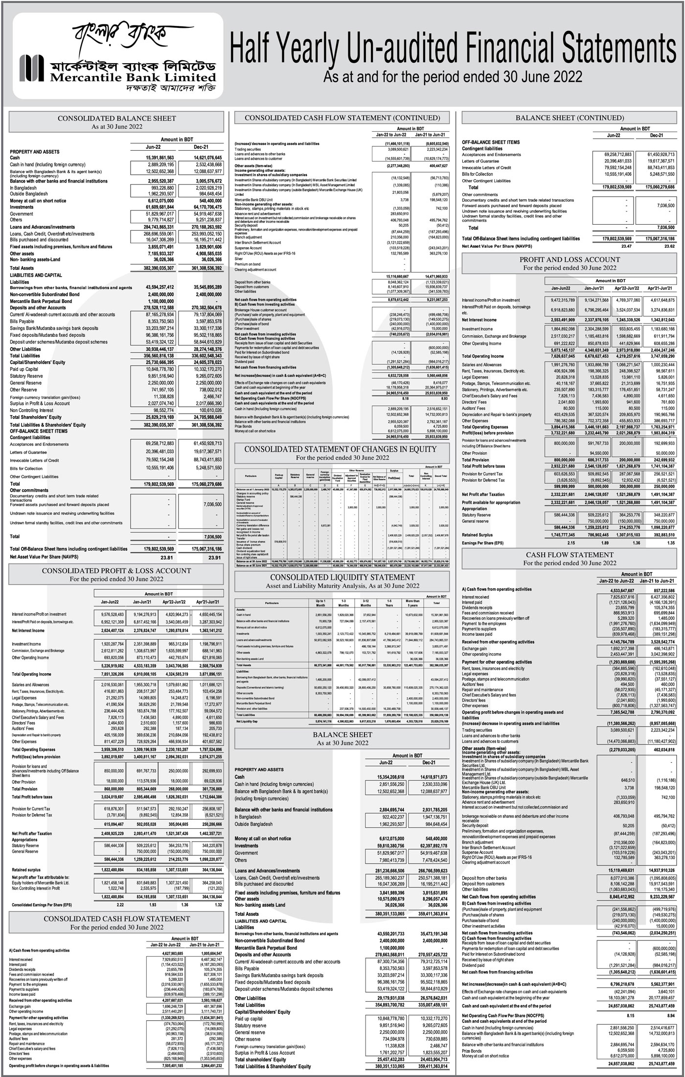 Half Yearly Un-audited Financial Statements of Mercanteile Bank Limited