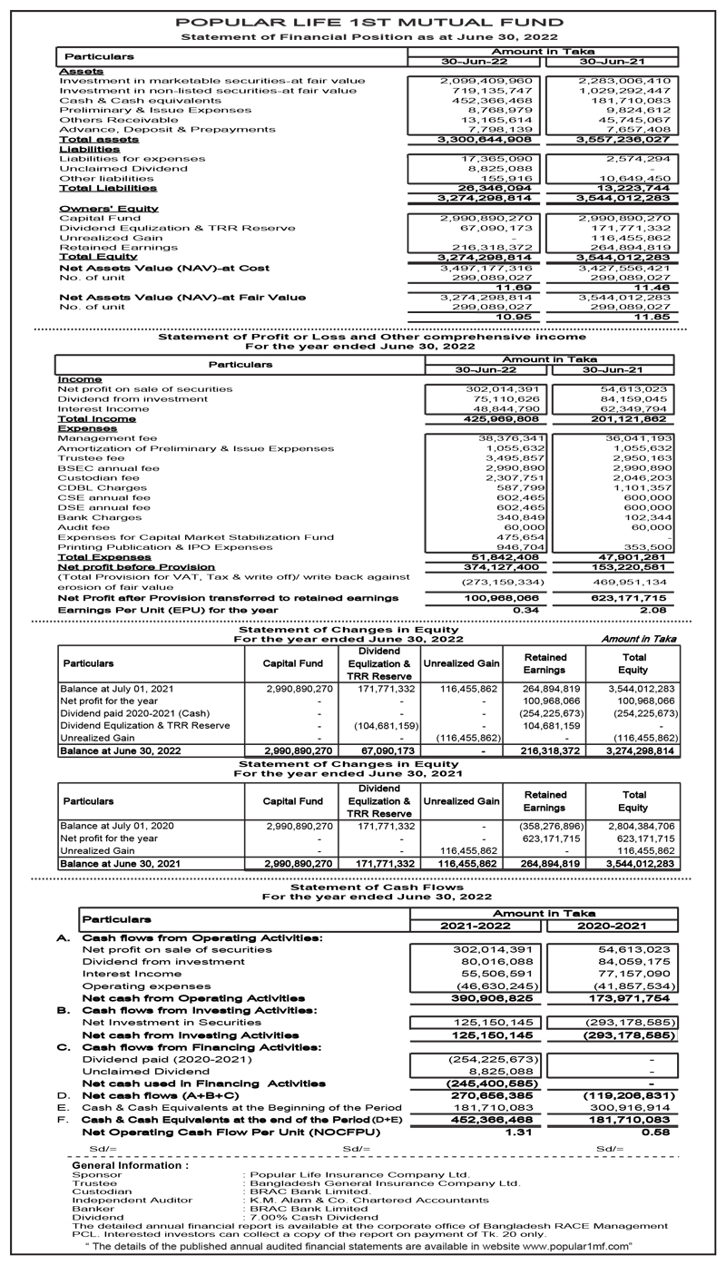 Statements of Financial Position of Popular Life First Mutual Fund