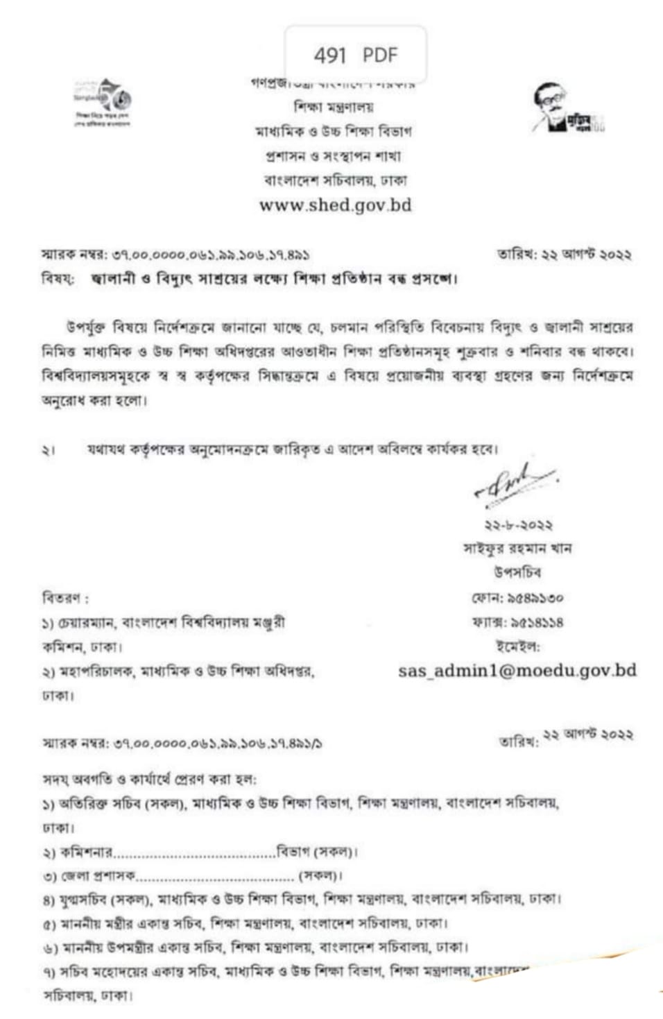 এর আগে আজ সোমবার (২২ আগস্ট) মন্ত্রিসভার বৈঠকে এ সিদ্ধান্ত নেওয়া হয়েছে বলে জানিয়েছেন মন্ত্রিপরিষদ সচিব। শিক্ষাপ্রতিষ্ঠান সাপ্তাহিক বন্ধের বিষয়ে প্রজ্ঞাপন জারি করেছে শিক্ষা মন্ত্রণালয়।