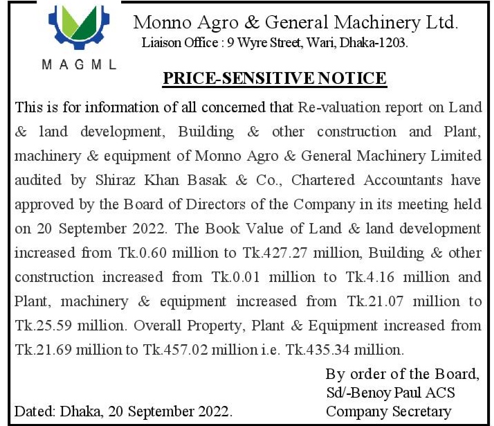Price Sensitive Information of Monno Agro & General Machinery Limited