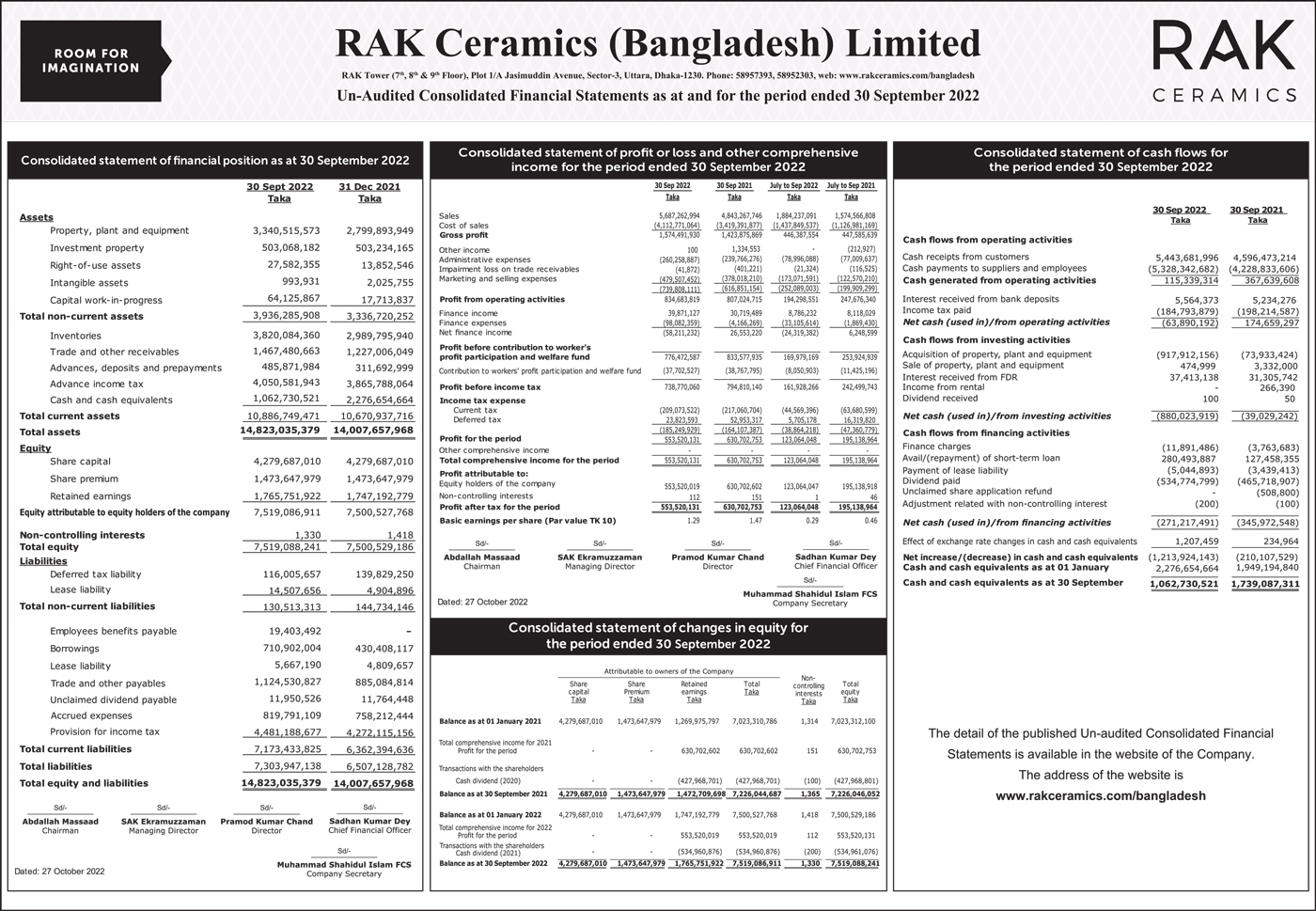 Price Sensitive Information of RAK Ceramics (Bangladesh) Limited