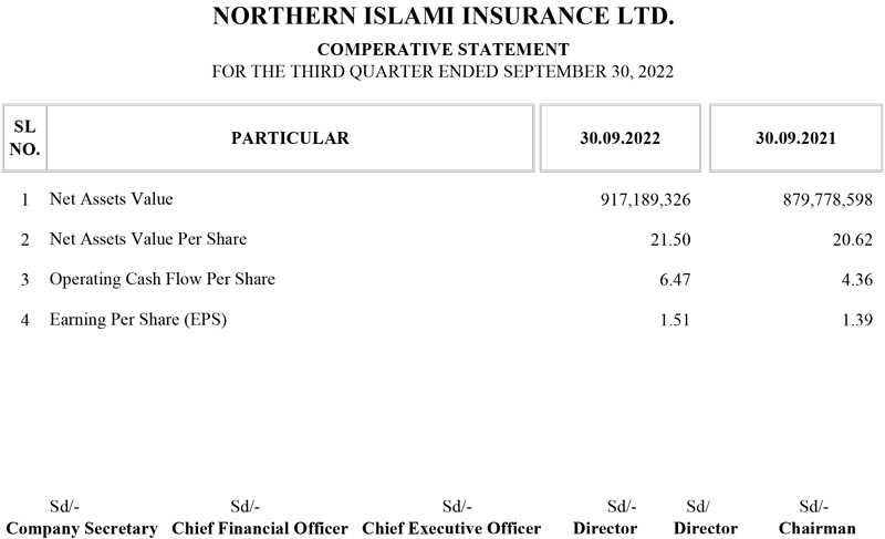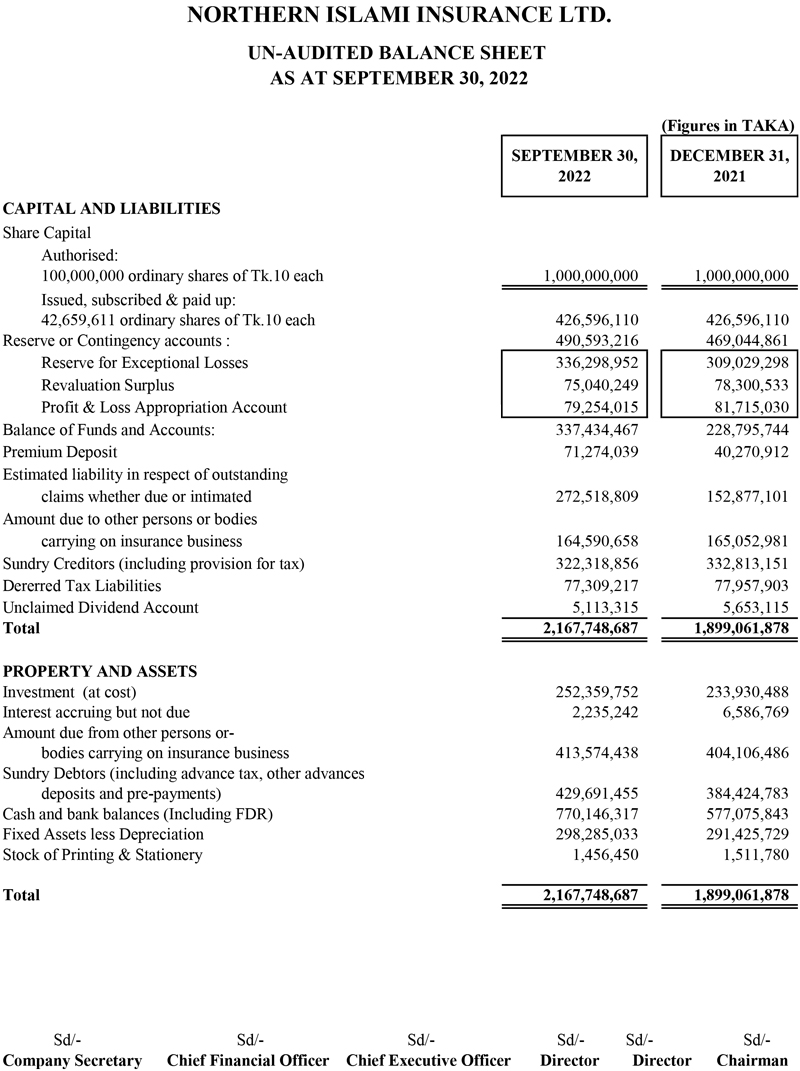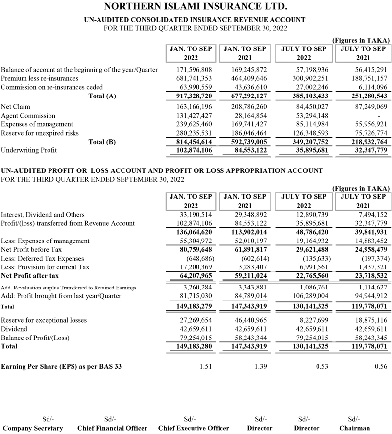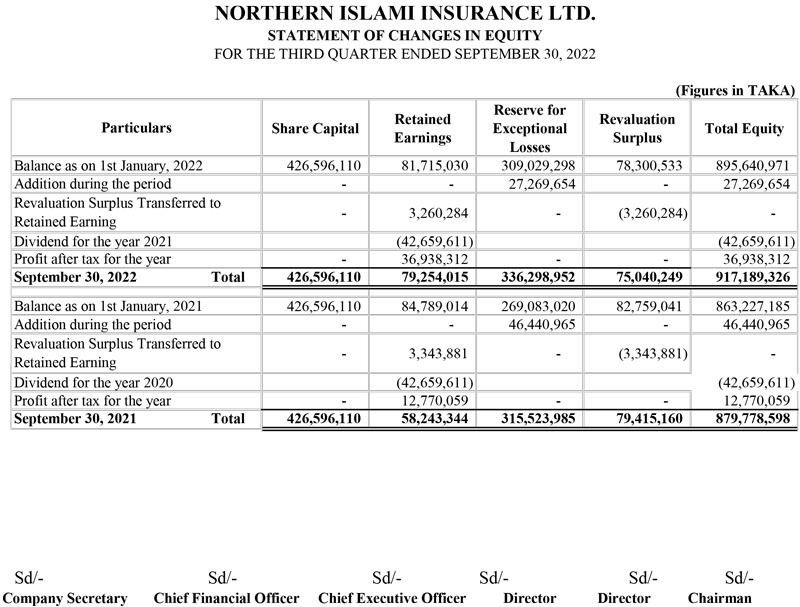 Q3 Financial Statements of Northern Islami Insurance Ltd.