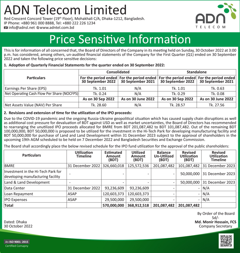 Price Sensitive Information of ADN Telecom Limited