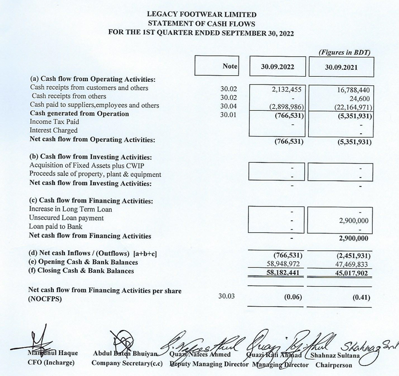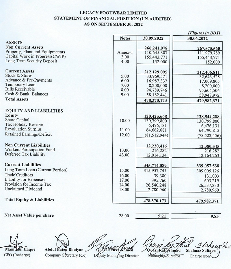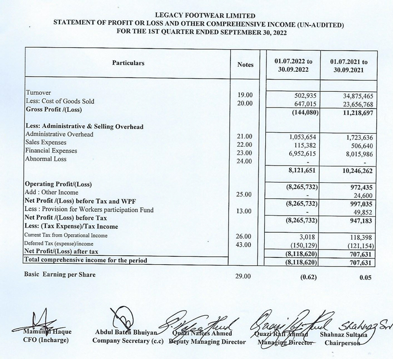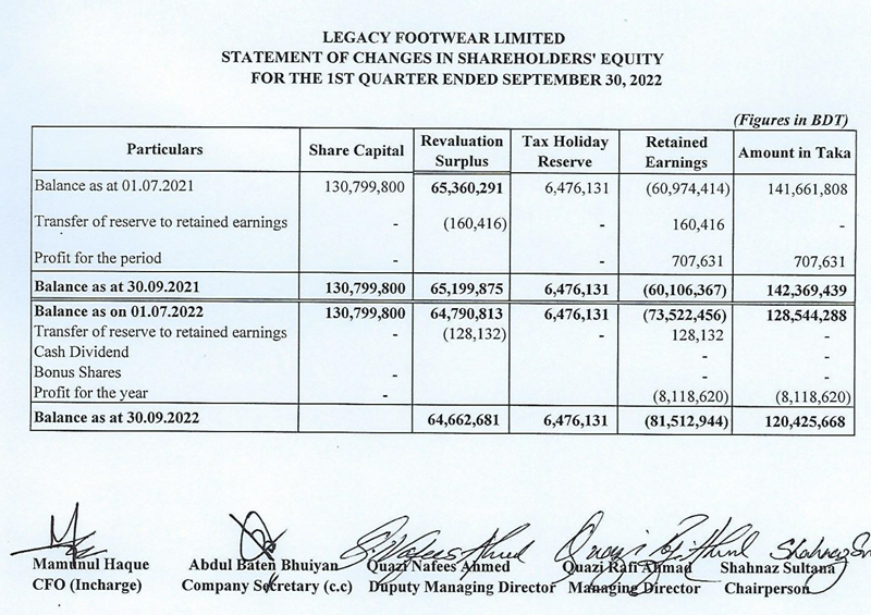 Q1 Financial Statements (Un-audited) of Legacy Footwear Limited