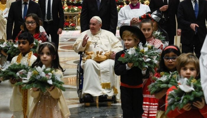 শনিবার (২৫ ডিসেম্বর) স্থানীয় সময় সন্ধ্যায় ভ্যাটিকান সিটির সেন্ট পিটার্স ব্যাসিলিকায় জড়ো হওয়া পূর্ণার্থীদের উদ্দেশে ভাষণ দেওয়ার সময় তিনি এসব কথা বলেন। এদিন সন্ধ্যায় হুইল চেয়ারে করে চার্চে প্রবেশ করেন ৮৬ বছর বয়সী পোপ ফ্রান্সিস। খবর বিবিসি।