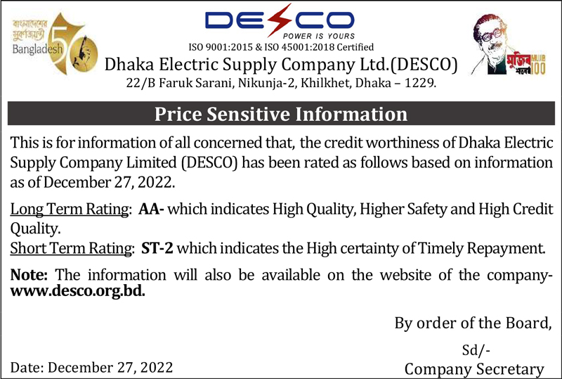 Price Sensitive Information of Dhaka Electric Supply Company Limited