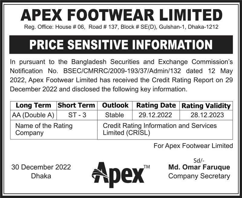 Price Sensitive Information of Apex Footwear Limited