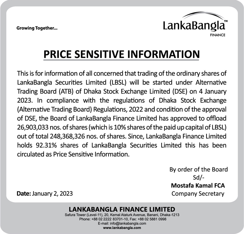 Price Sensitive Information of LankaBangla Finance ltd