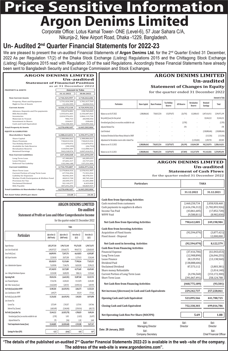Price Sensitive Information of Argon Denims Limited