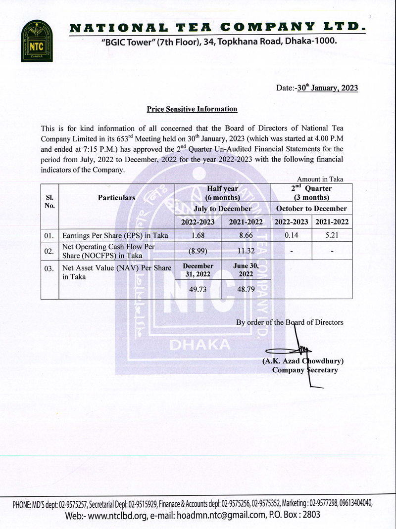 Price Senstive Information of National Tea Company Ltd.