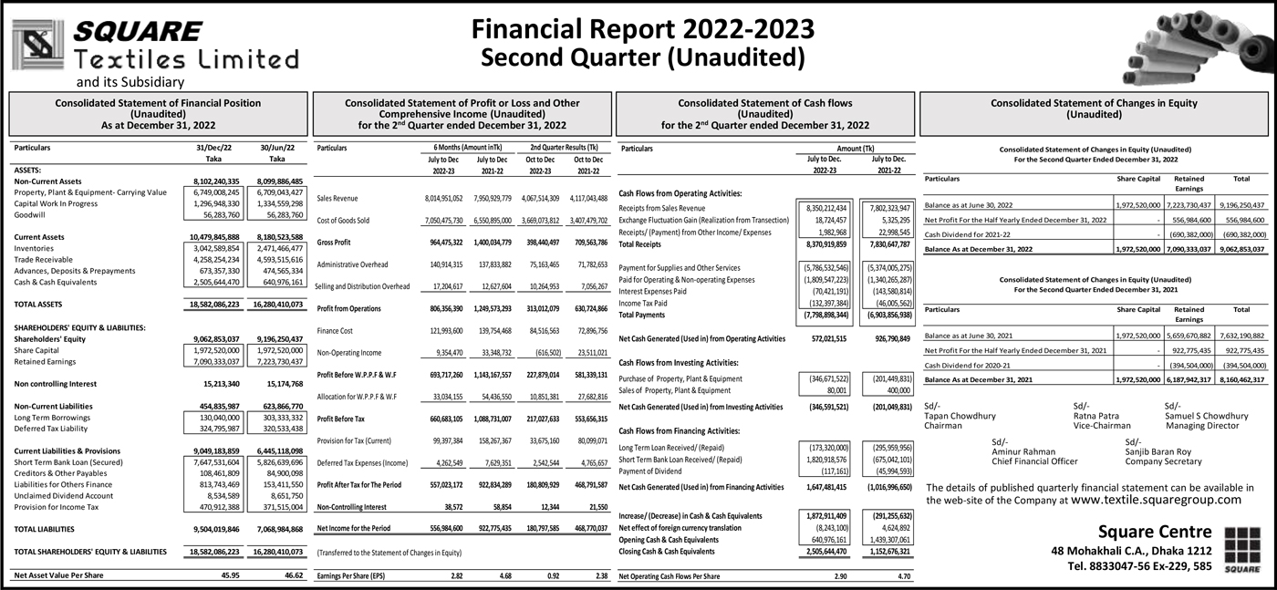 Q2 (Unaudited) Financial Statements of Square Textiles Ltd.