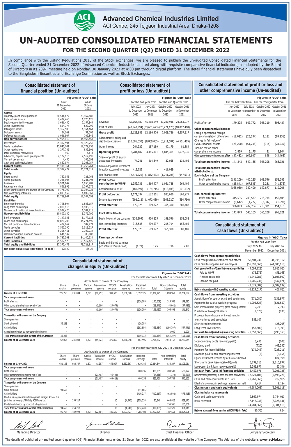 Un-audited consolidated Financial Statements (Q2) of ACI Limited