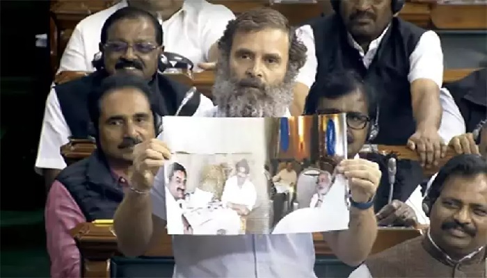 মঙ্গলবার লোকসভায় রাহুল বলেছিলেন, ২০১৪ সালের আগে গৌতম আদানি বিশ্বের ধনীদের তালিকায় ৬০৯ নম্বরে ছিলেন। কিন্তু মোদি প্রধানমন্ত্রী হওয়ার পরই কী যে জাদু হল, আদানি দুই নম্বরে পৌঁছে গেলেন। এসময় তিনি মোদী এবং আদানির একটি ছবিও তুলে ধরেন।
