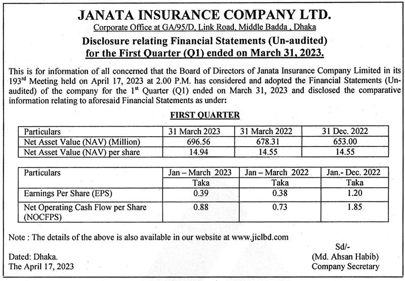 Q1 Financial Statements of Janata Insurance Company Ltd.