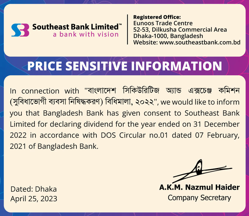Price Sensitive Information of Southeast Bank Ltd.