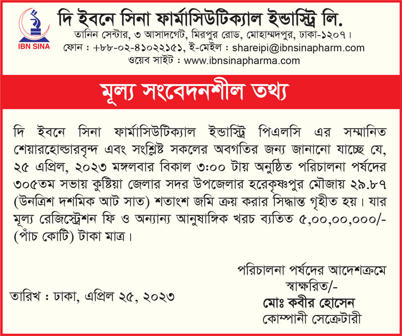 Price Sensitive Information of The IBN SINA Pharmaceutical Industry Ltd.