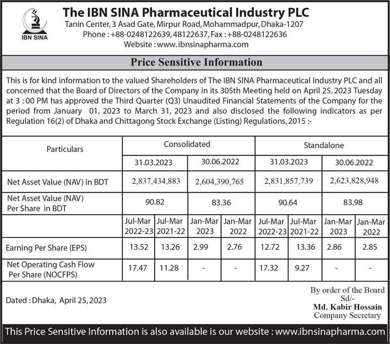 Price Sensitive Information of The IBN SINA Pharmaceutical Industry PLC