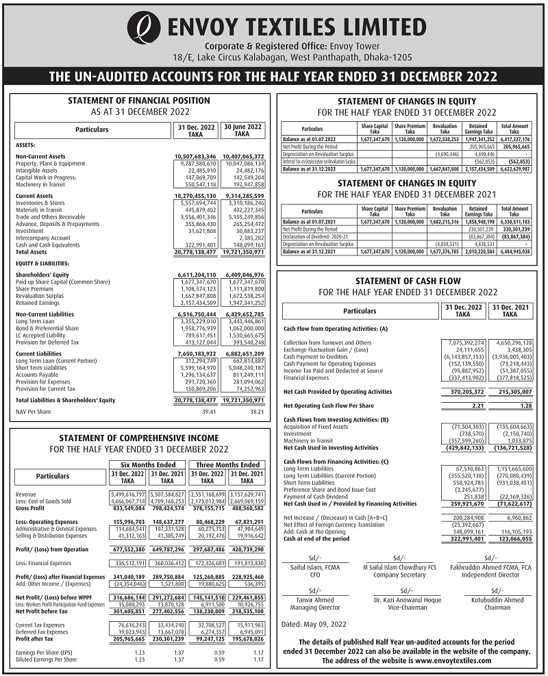 Half Yearly Financial Statements (Un-audited) of Envoy Textiles Limited
