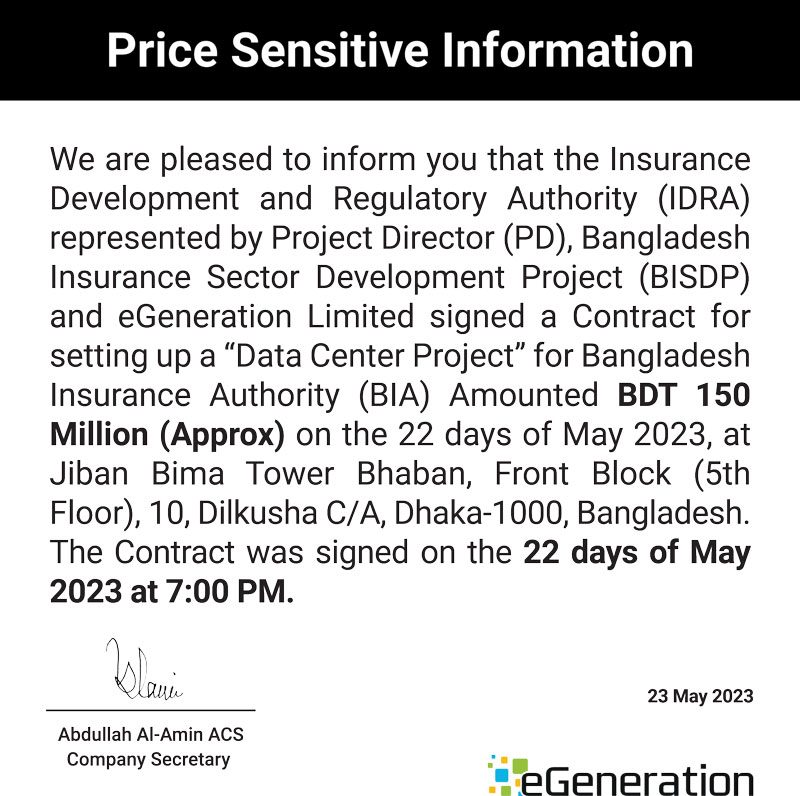 Price Sensitive Information of eGeneration Ltd.