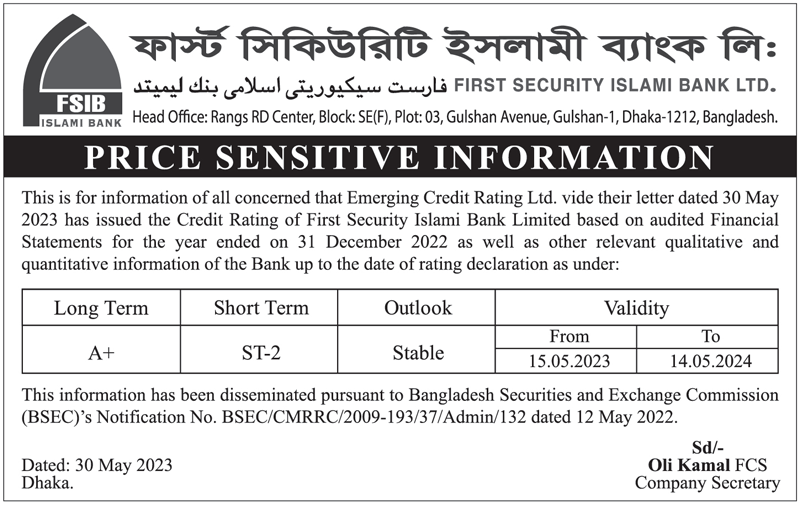 Price Sensitive Information of First Security Islami Bank Ltd.