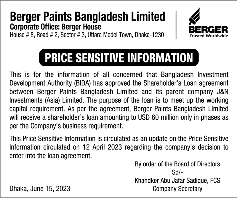 Price Sensitive Information of Berger Paints Bangladesh Limited