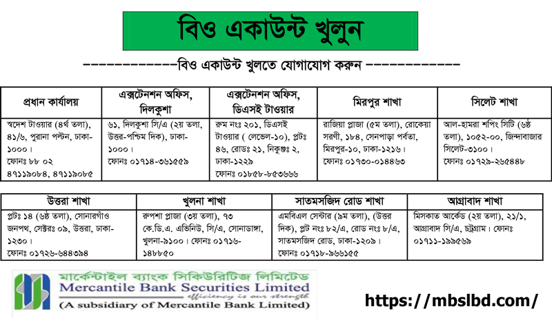 মার্কেন্টাইল ব্যাংক সিকিউরিটিজ লিমিটেড এর বিও হিসাব সংক্রান্ত বিজ্ঞপ্তি