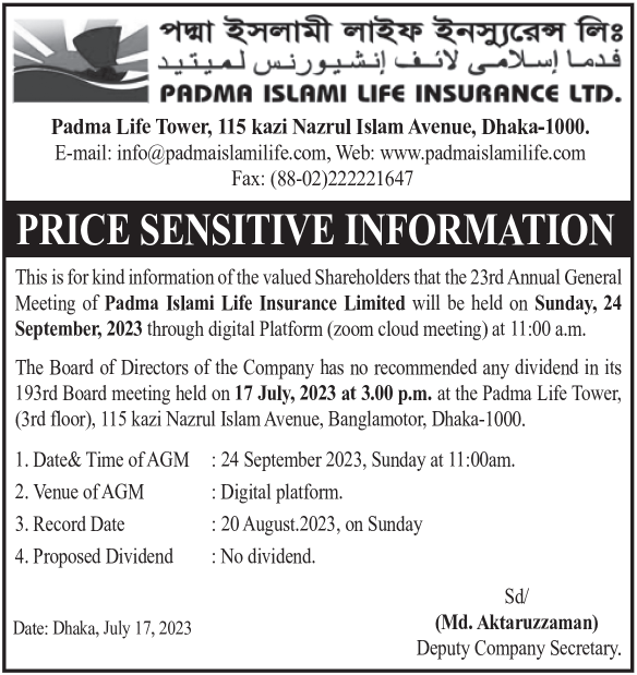 Price Sensitive Information of Padma lslami Life Insurance Limited