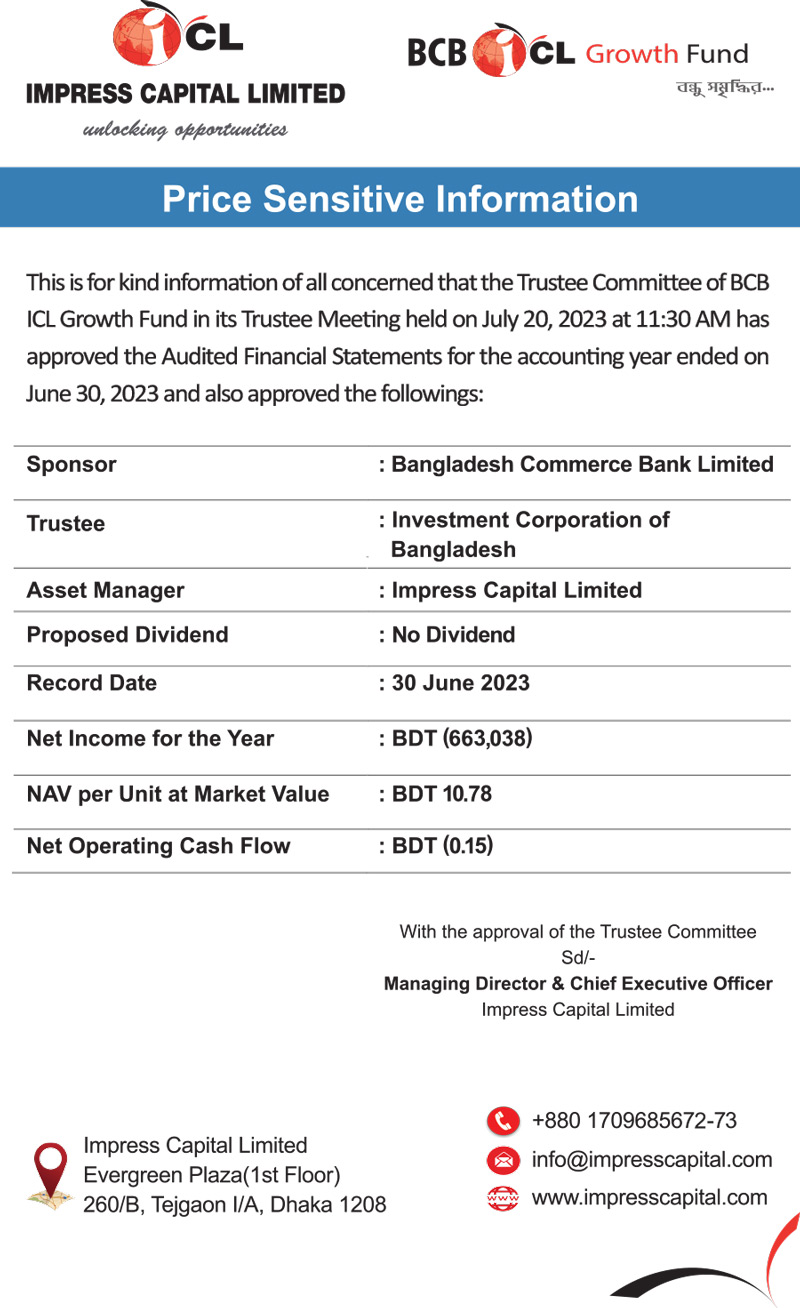 Price Sensitive Information of BCB ICL Growth Fund