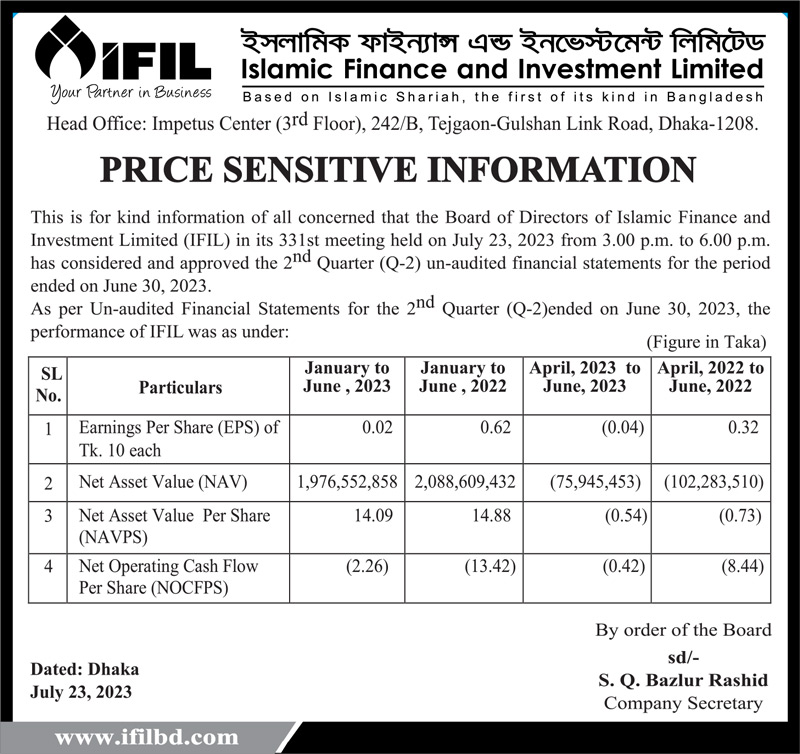 Price Sensitive Information of Islamic Finance and Investment Limited