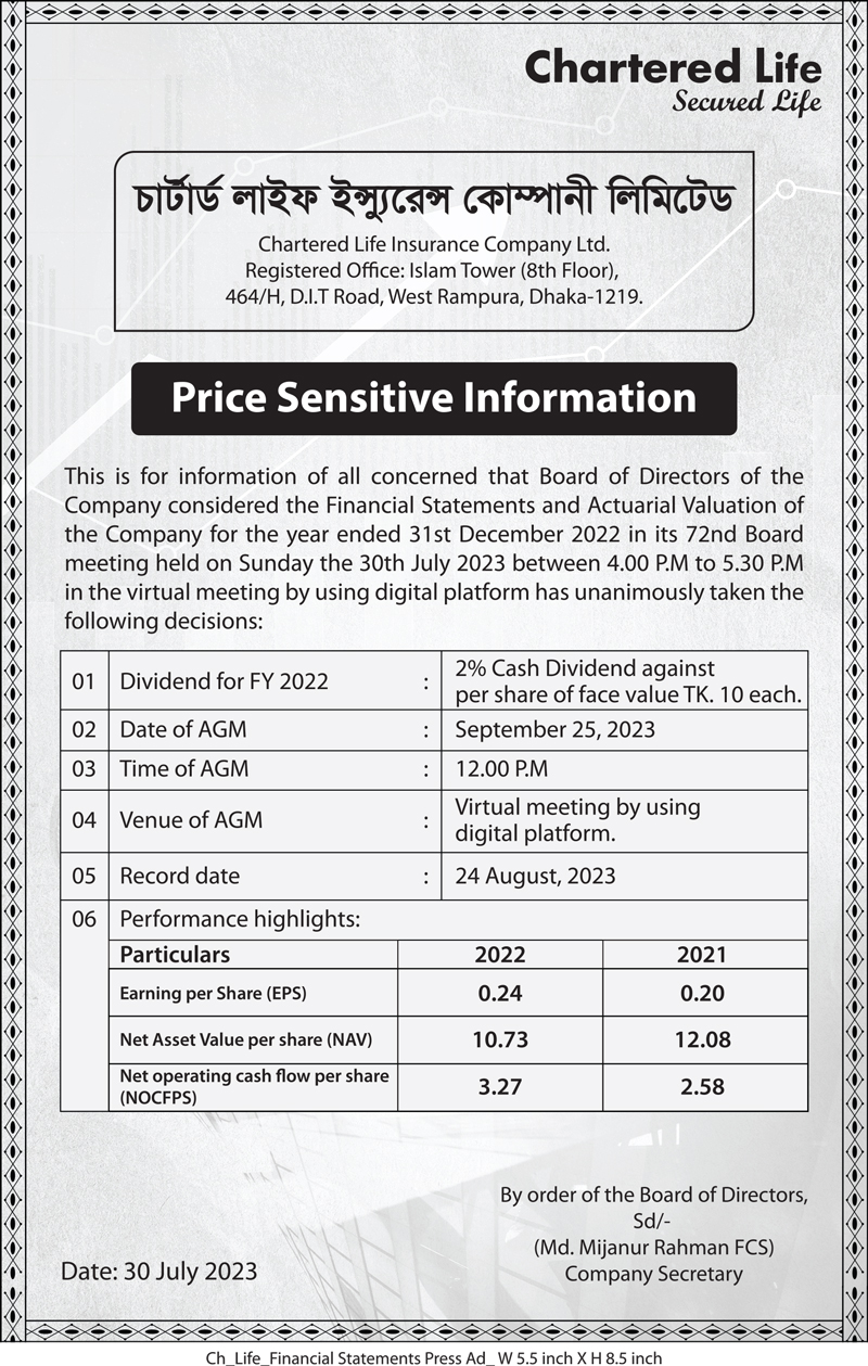 Price Sensitive Information of Chartered Life Insurance Company Ltd.