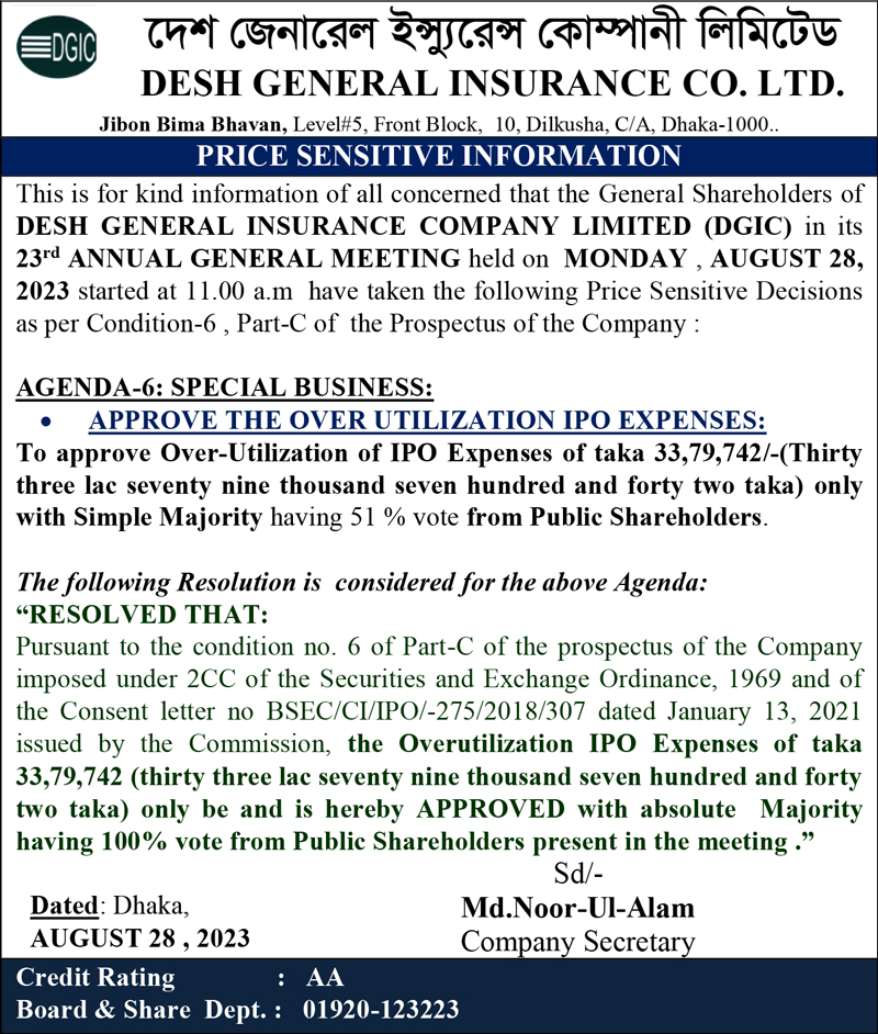 Price Sensitive Information of Desh General Insurance Company Limited