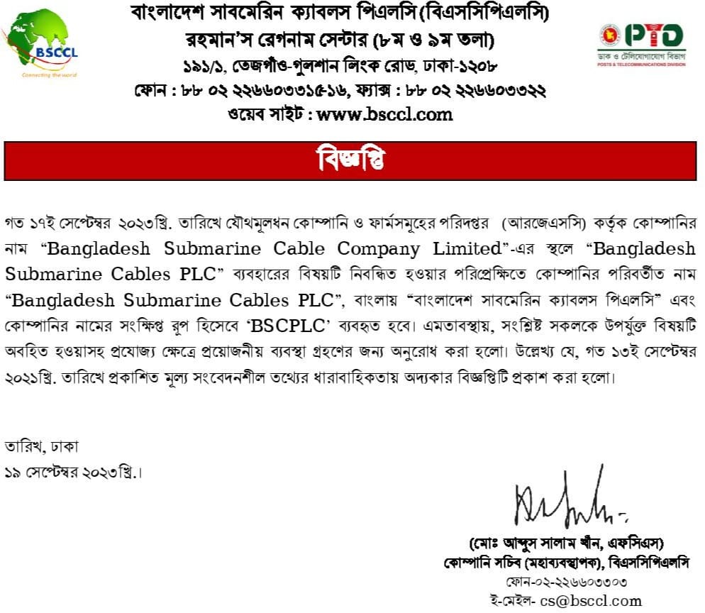 Notice of Bangladesh Submarine Cable Company Limited (BSCCL)