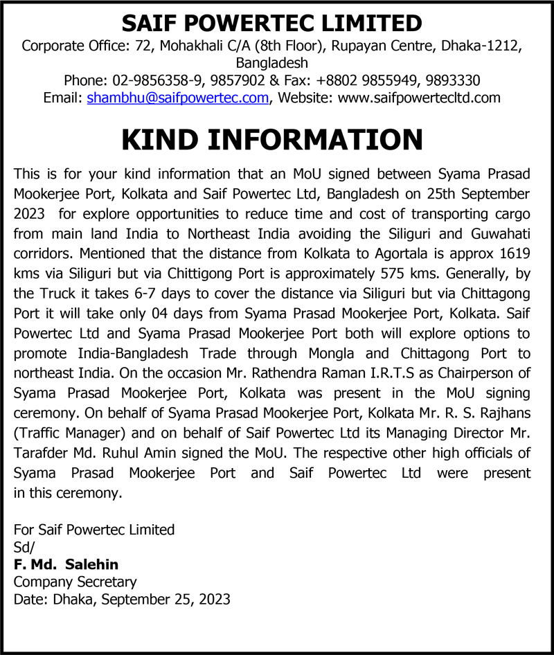 Kind Information of Saif Powertec Ltd.