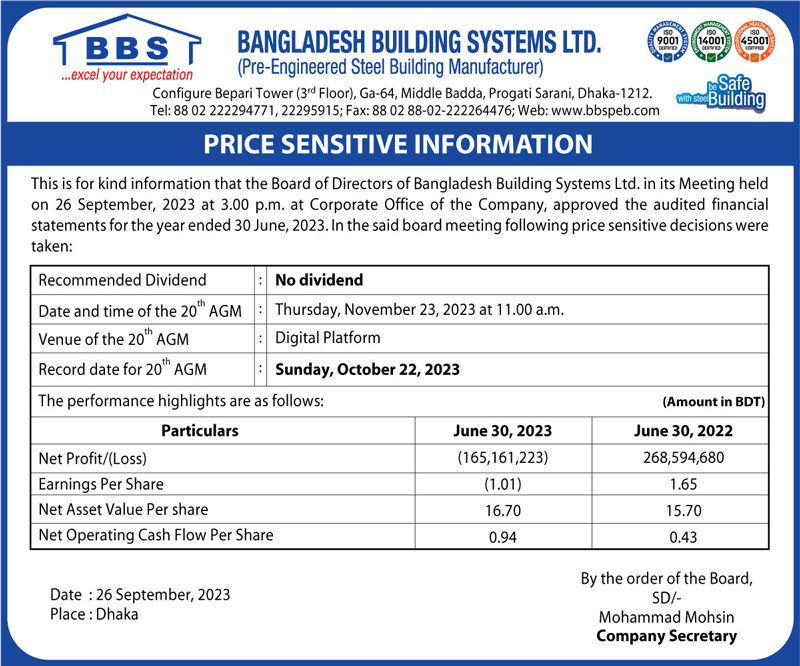 Price Sensitive Information of Bangladesh Building Systems Ltd.