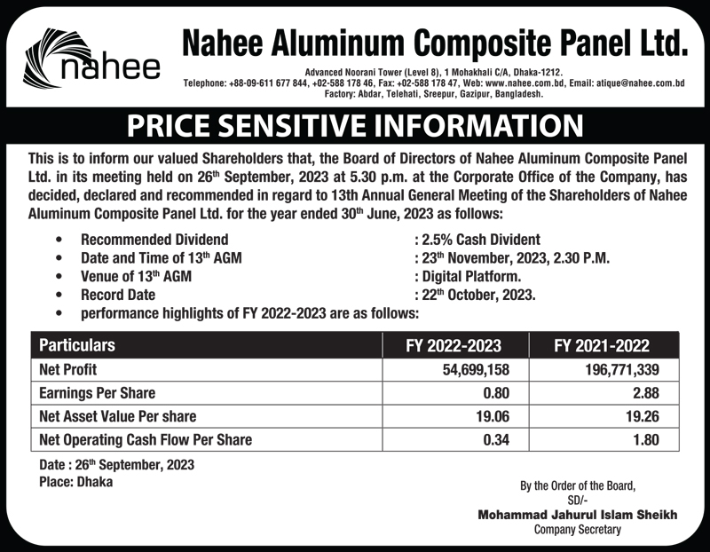 Price Sensitive Information of Nahee Aluminum Composite Panel Ltd