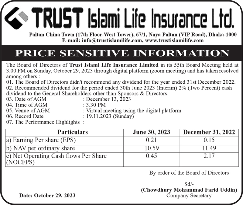 Price Sensitive Information of Trust Islami Life Insurance Limited