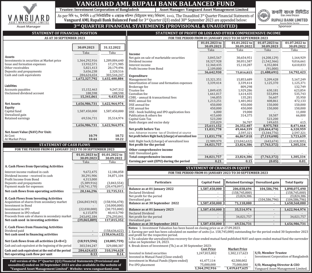 Q3 Financial Statements of Vanguard AML Rupali Bank Balanced Fund