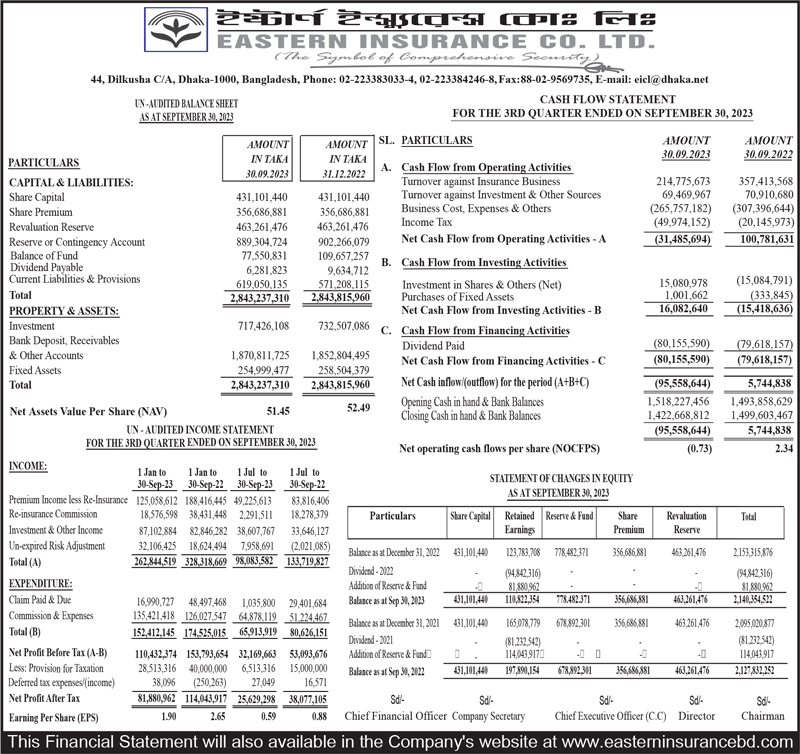 Q3 Financial Statements of Eastern Insurance Company Limited
