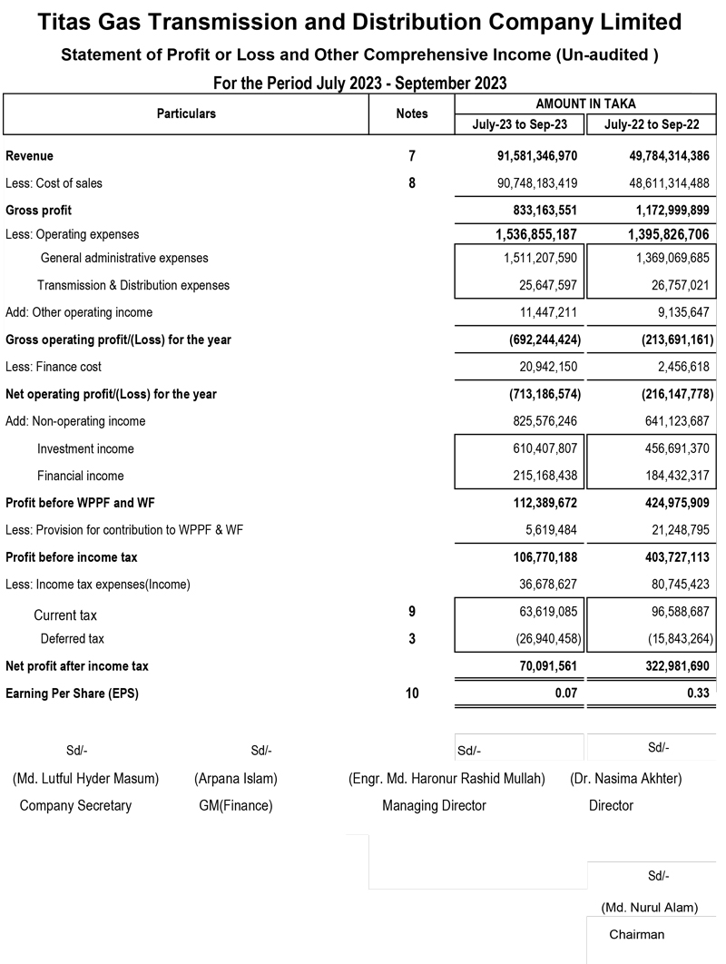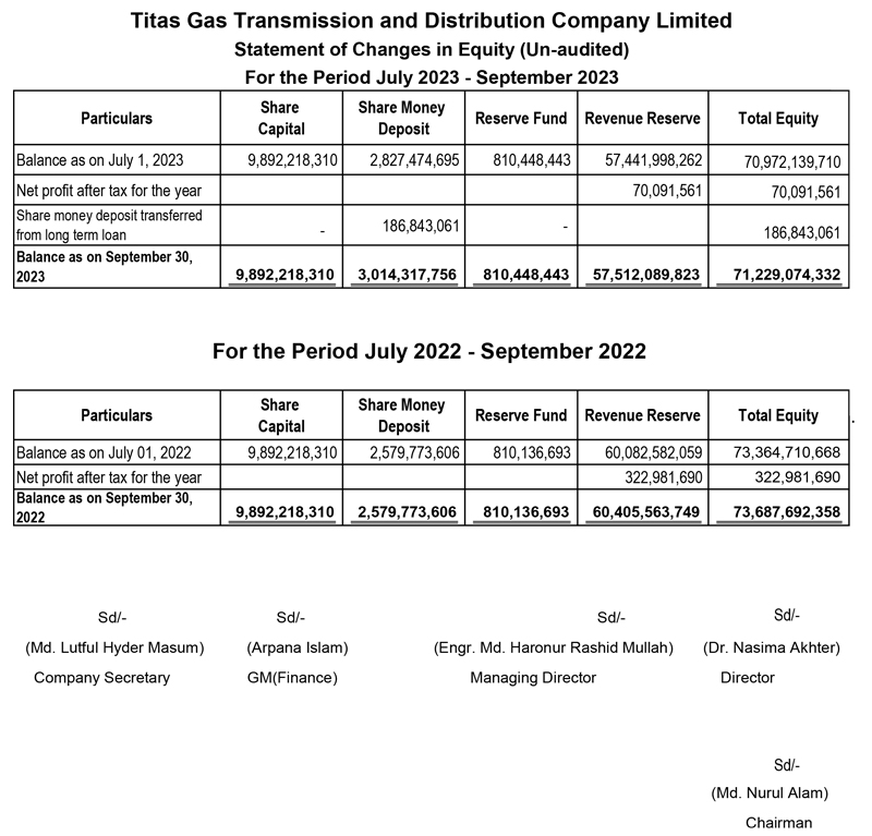 Q1 Financial Statements of Titas Gas Transmission and Distribution Company Limited